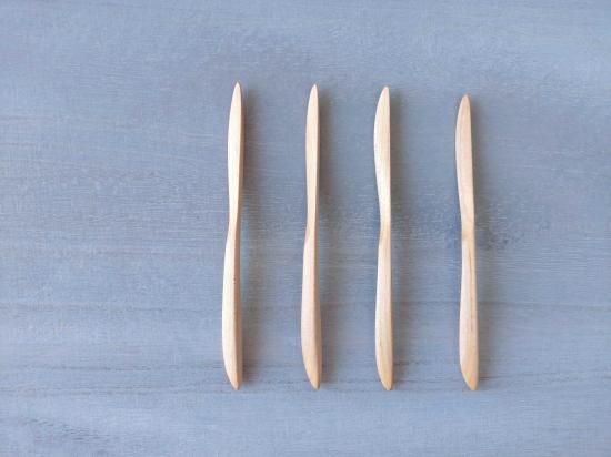 どなたかのスプーンの両隣から生まれた 流れる様なデザインの 新作 菓子切り。