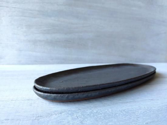 「楕円長皿 刷毛黒」